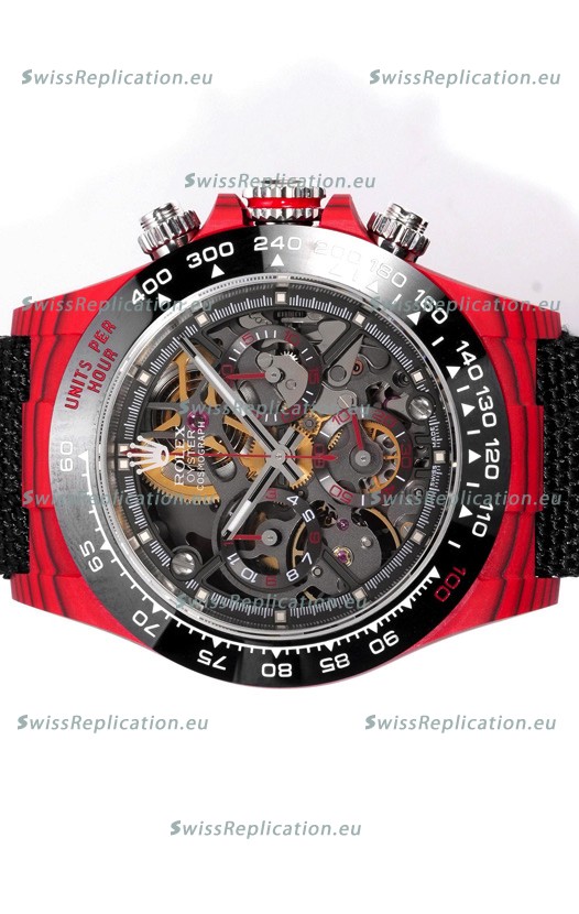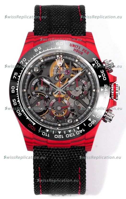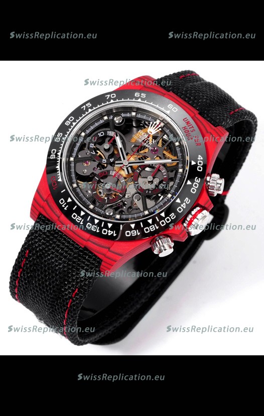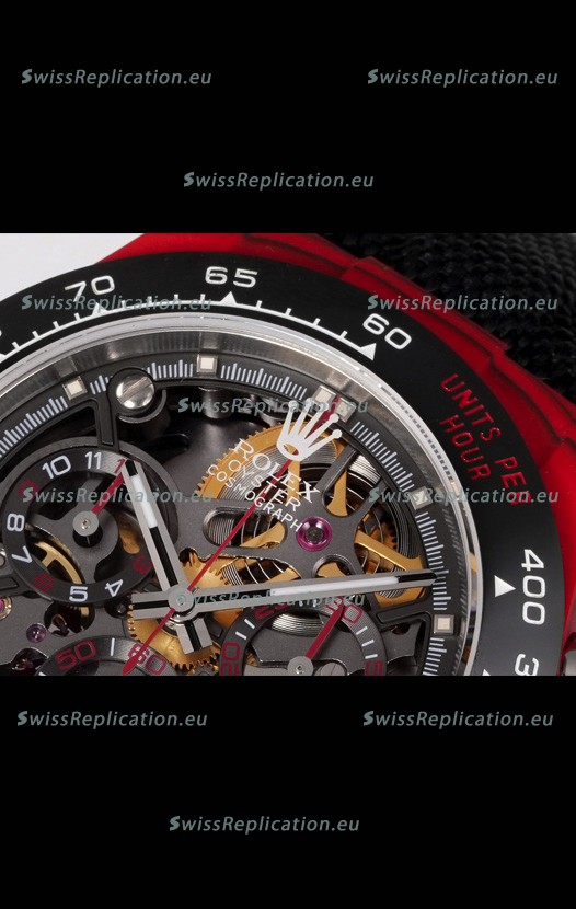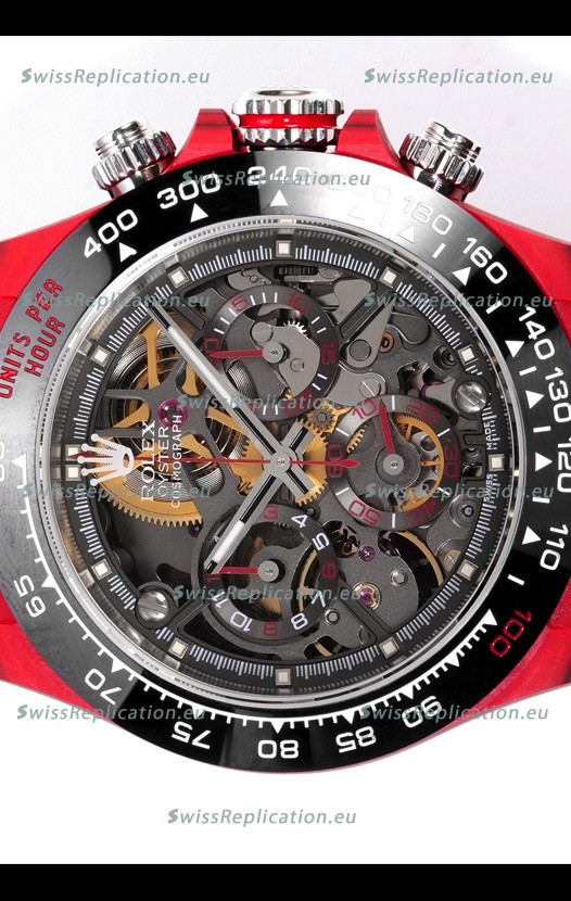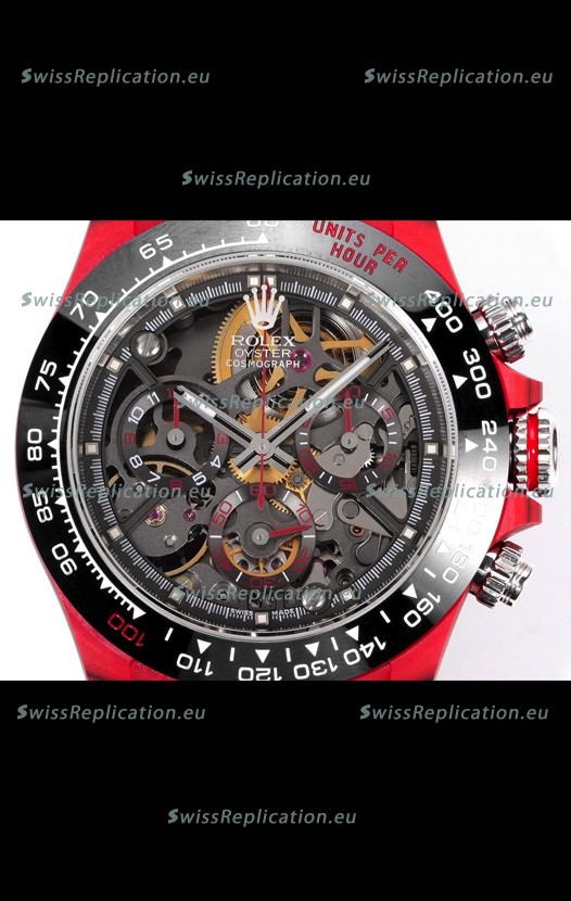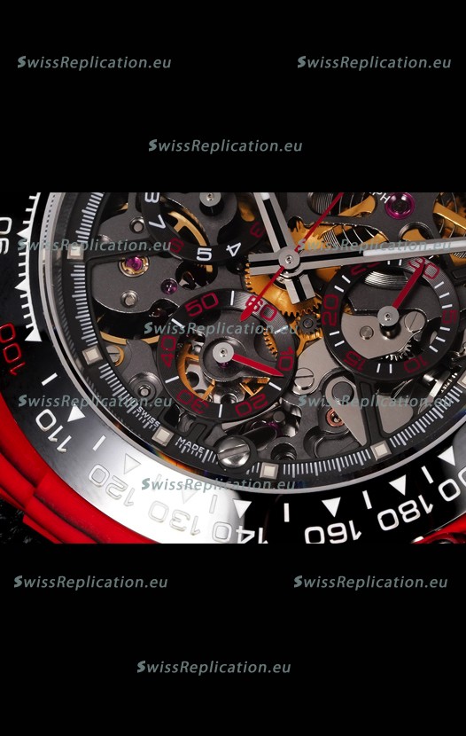 | Description | Rolex Daytona Blaken Red Carbon 1:1 Swiss Mirror Replica Skeleton Dial Cal.4130 Movement |