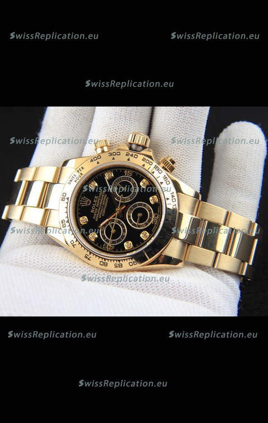 | Description | Rolex Daytona Japanese Movement Gold Casing Replica Watch in Black Dial |