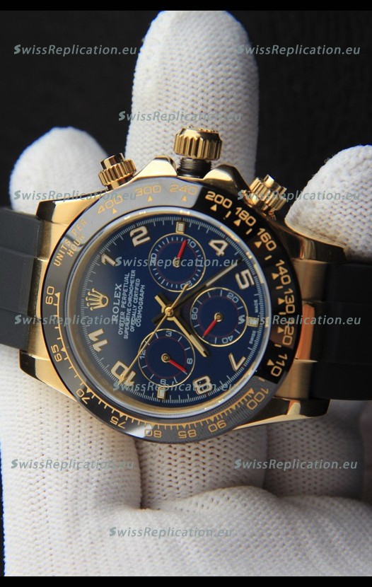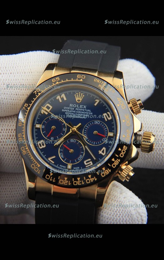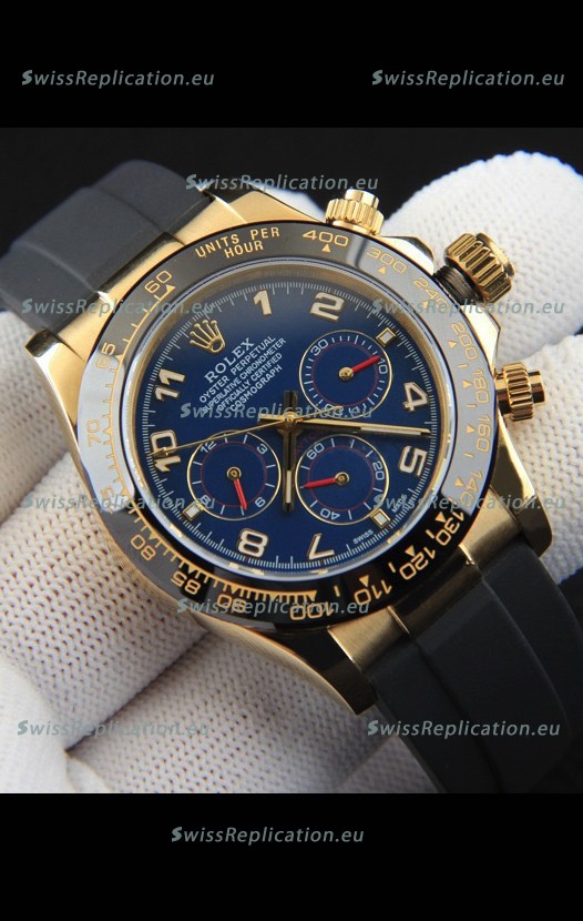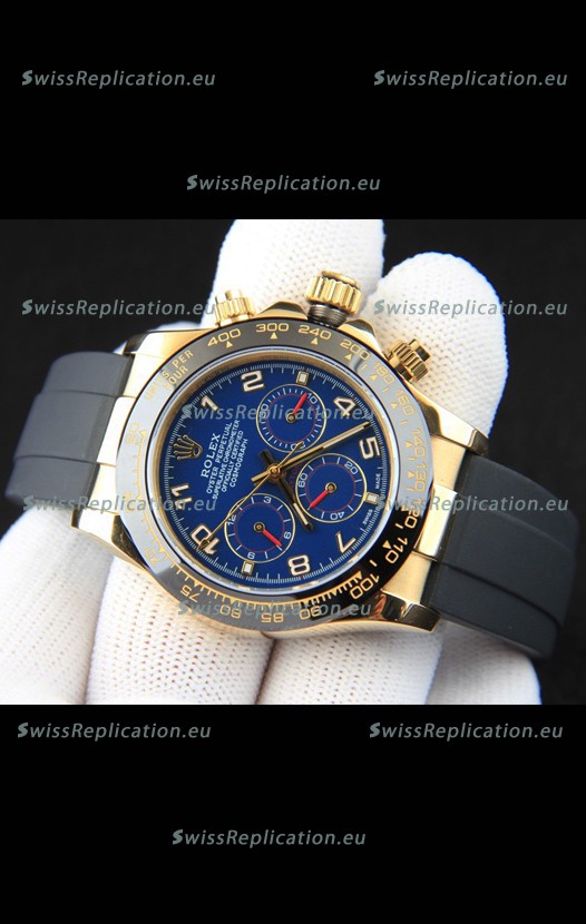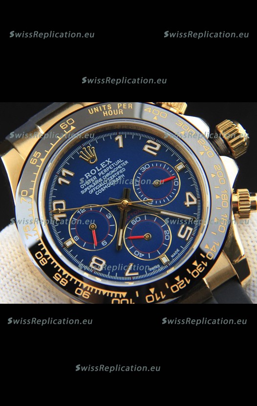 Description Rolex Daytona Japanese Movement Gold Casing Replica Watch in Blue Dial