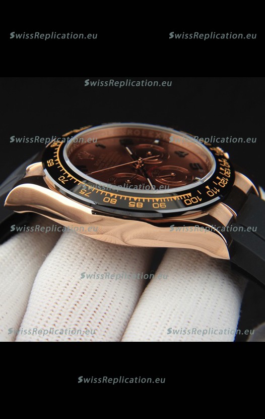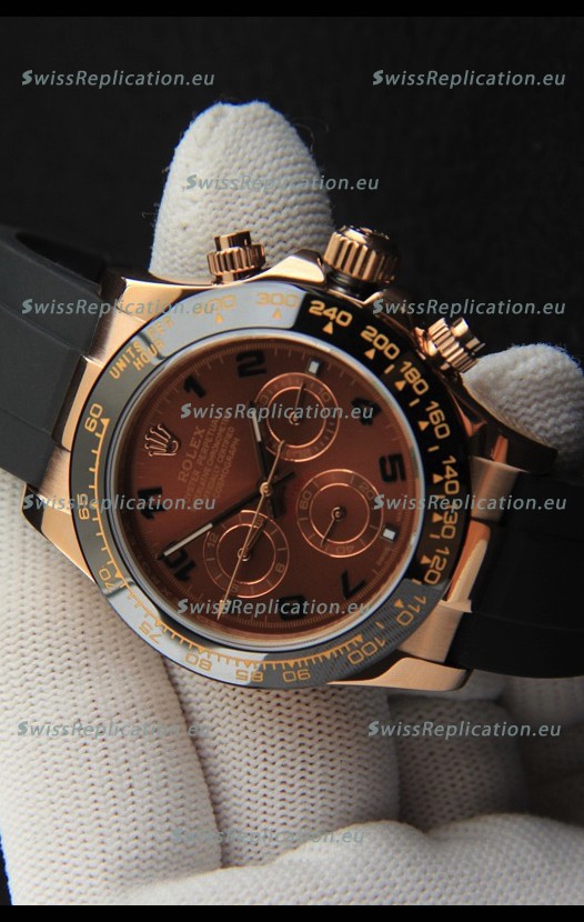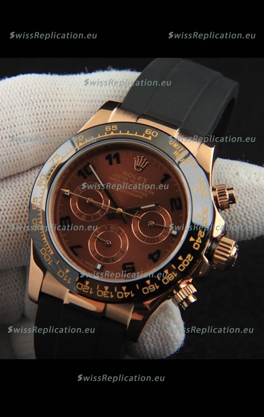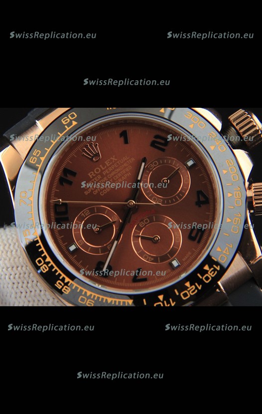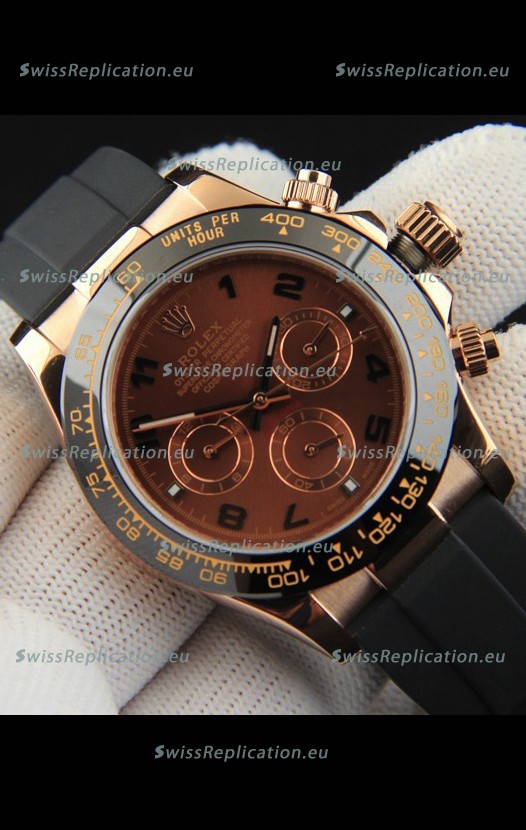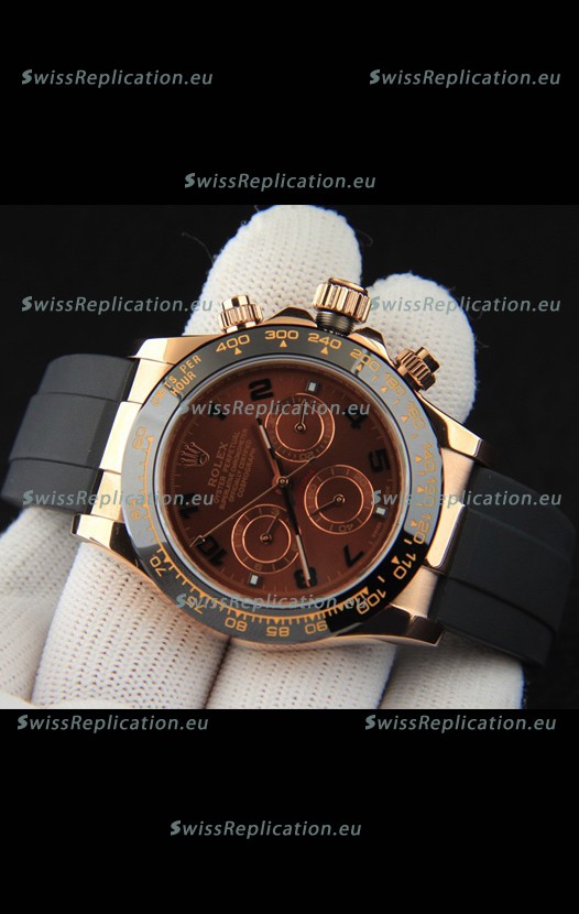 Description Rolex Daytona Japanese Movement Gold Casing Replica Watch in Brown Dial