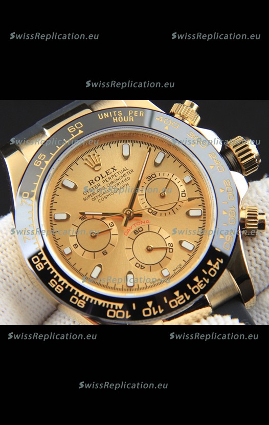 | Description | Rolex Daytona Japanese Movement Gold Casing Replica Watch in Gold Dial |