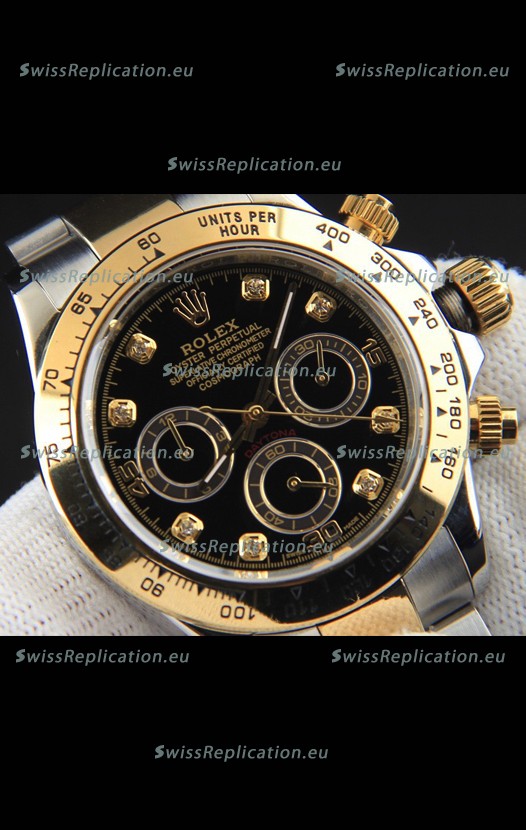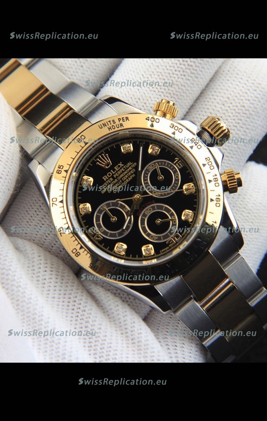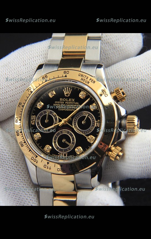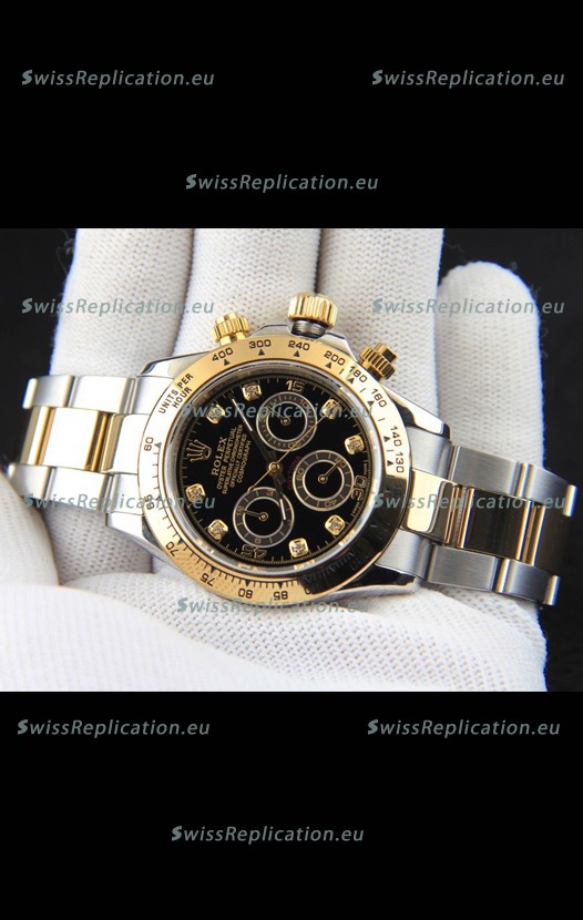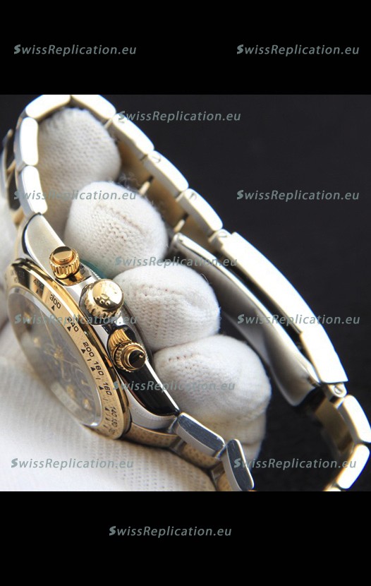 | Description | Rolex Daytona Japanese Movement Two Tone Gold Casing Watch in Black Dial |