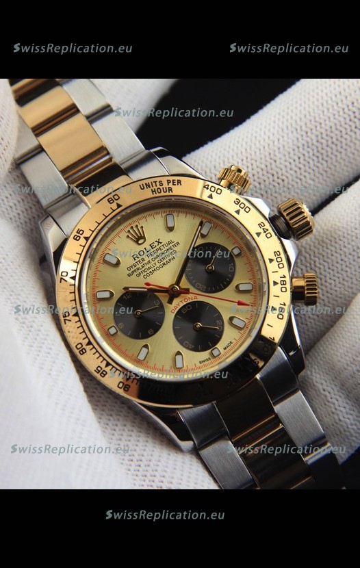 | Description | Rolex Daytona Japanese Movement Two Tone Gold Casing Watch in Gold Dial |
