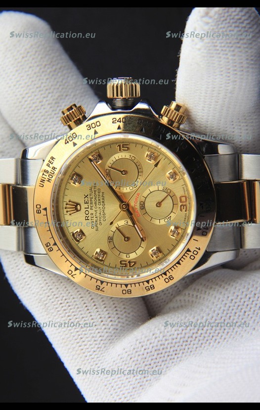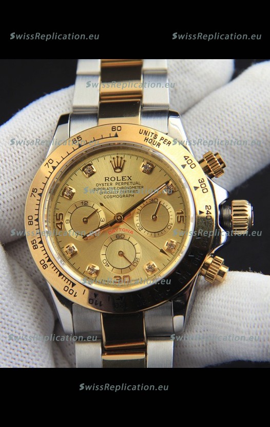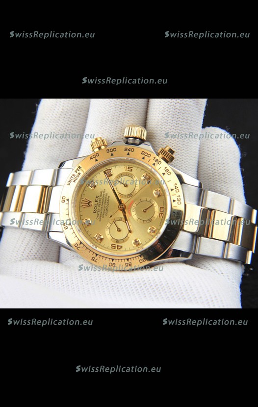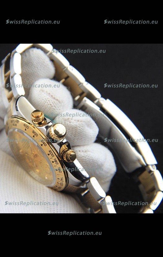 | Description | Rolex Daytona Japanese Movement Two Tone Gold Casing Watch in Gold Dial |