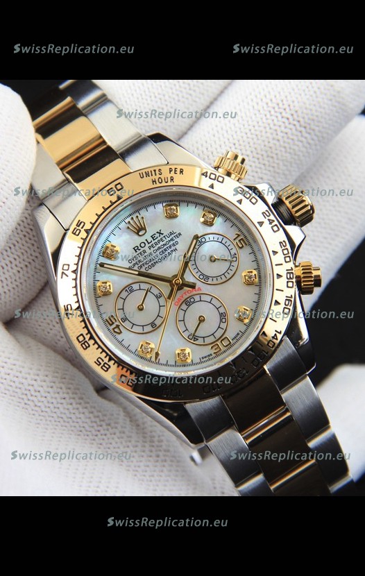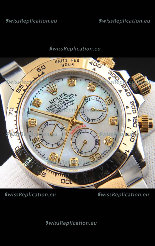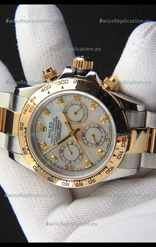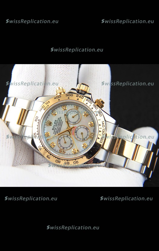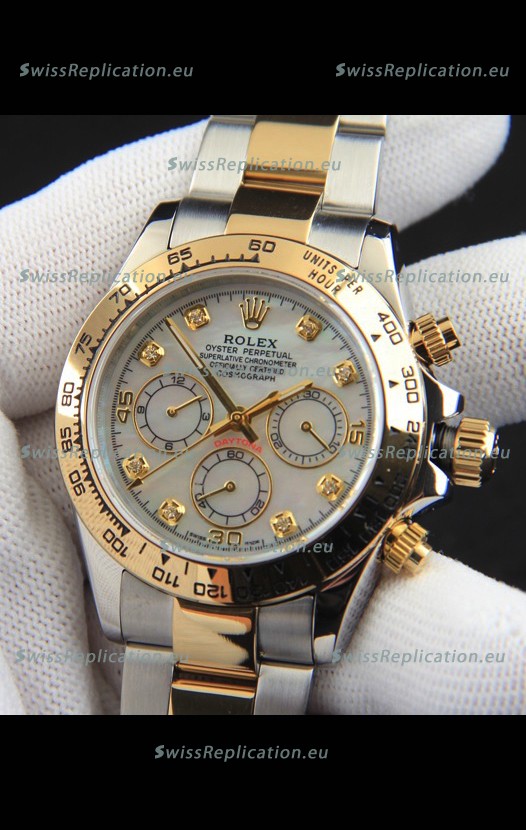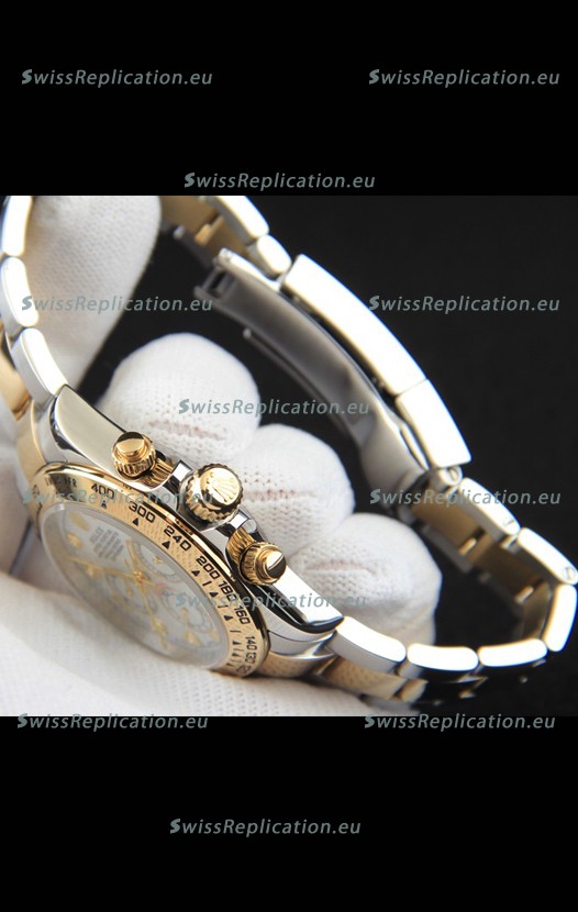 | Description | Rolex Daytona Japanese Movement Two Tone Gold Casing Watch in Pearl Dial |