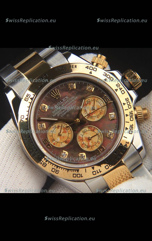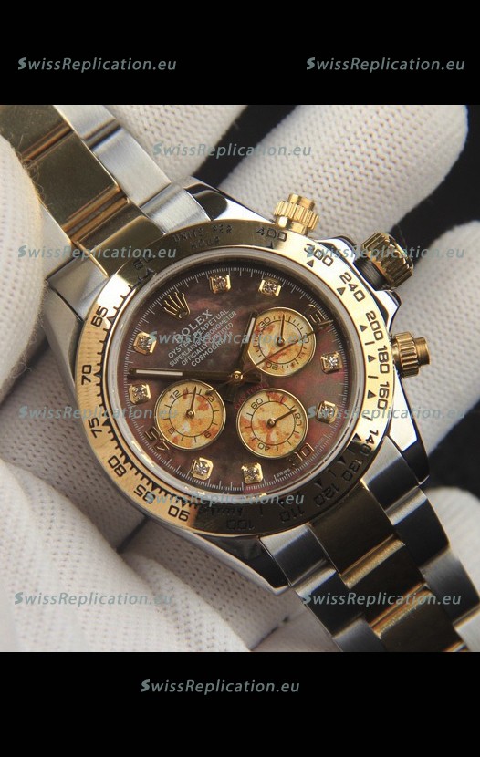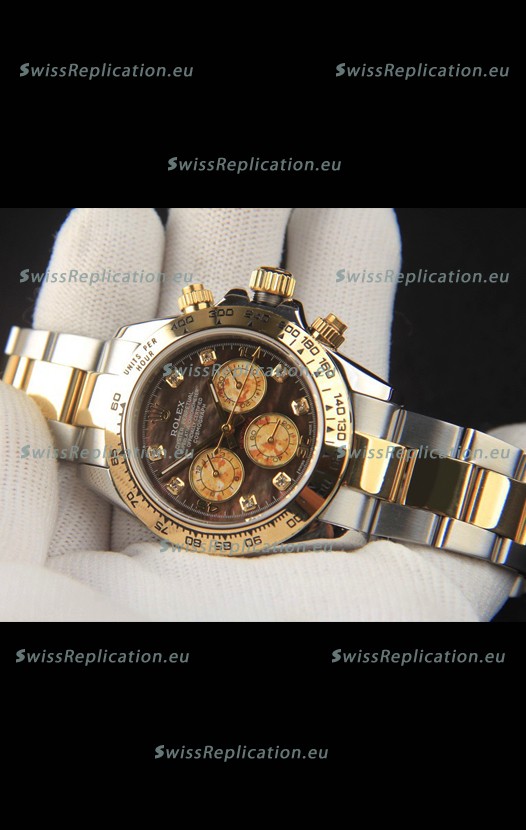 | Description | Rolex Daytona Japanese Movement Two Tone Gold Casing Watch in Pearl Dial |
