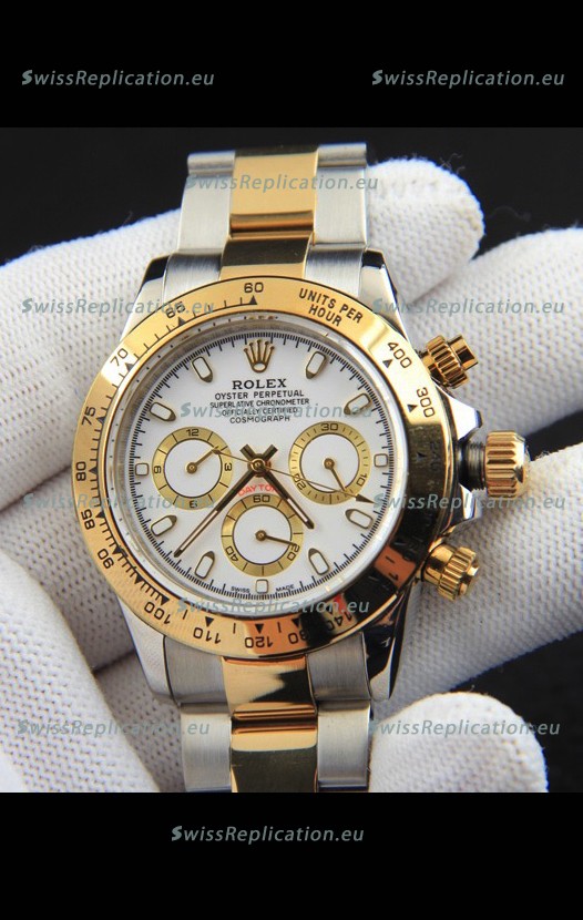 | Description | Rolex Daytona Japanese Movement Two Tone Gold Casing Watch in White Dial |