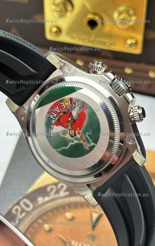 The Best Rolex Daytona Model Replicated up to Date. The First Rolex model to adopt a 904L Steel on Casing and Strap which is the same steel used by Rolex. Compared with an Original Side by Side and there were NO Differences Whatsoever. Complete list of details have been stated below and you will see that tremendous amount of detaiing and work has been put into this edition.