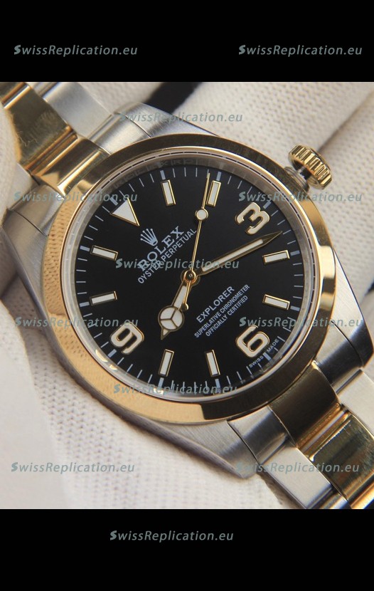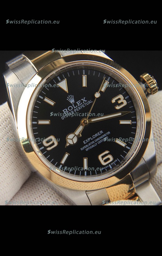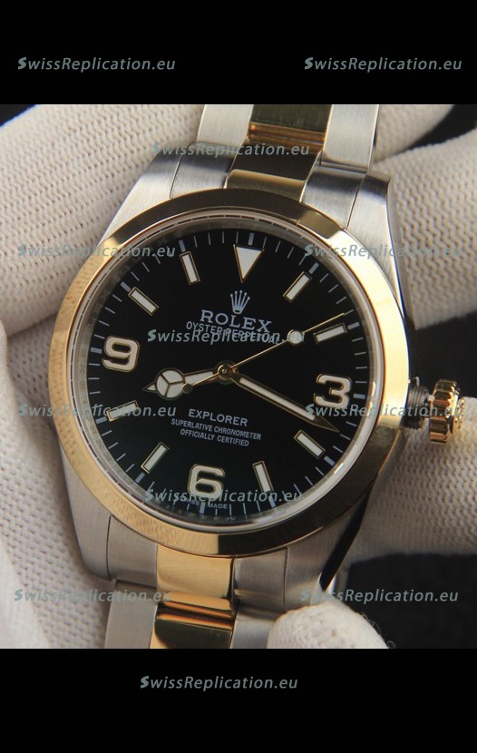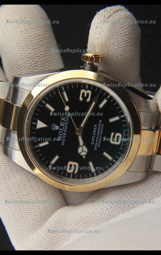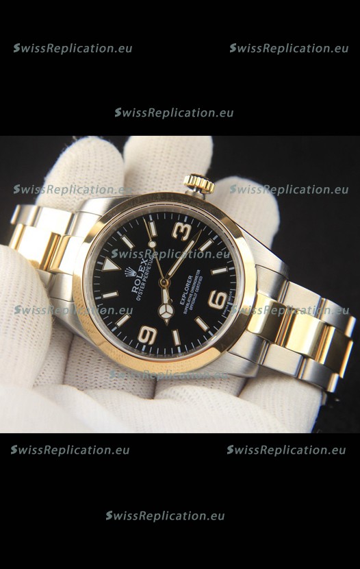 | Description | Rolex Explorer I Japanese Movement Replica Watch in Two Tone Black Dial 39MM |