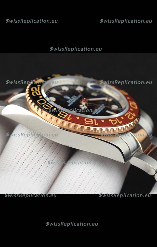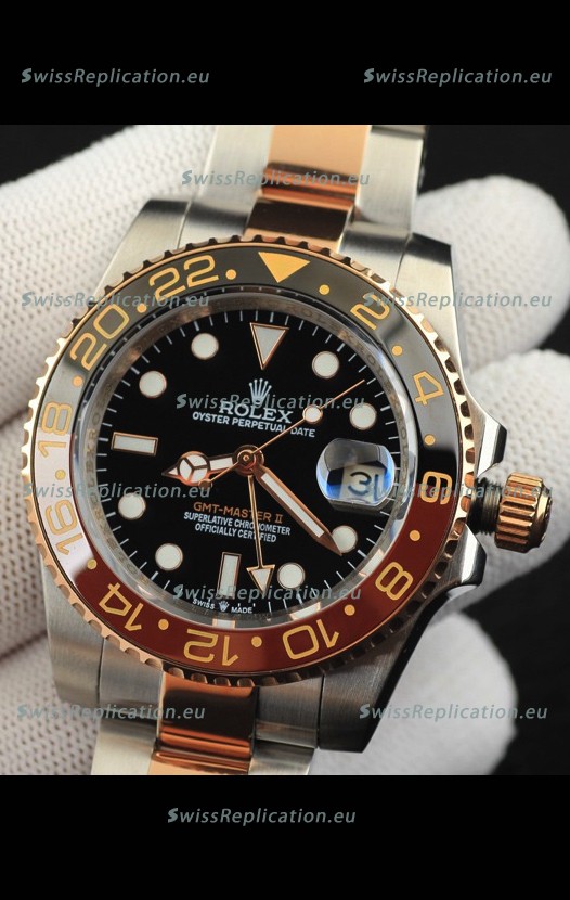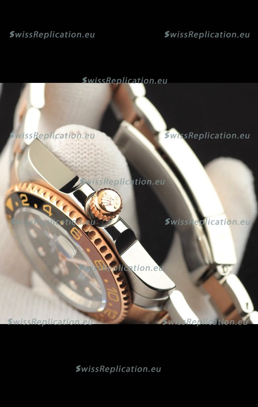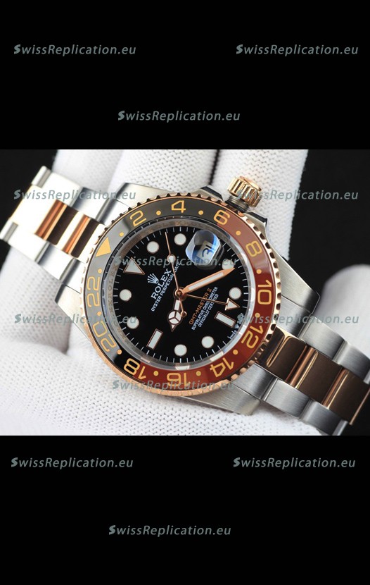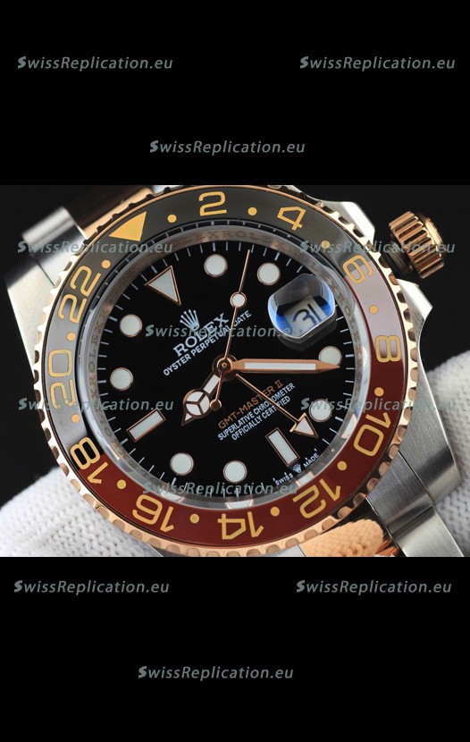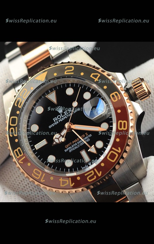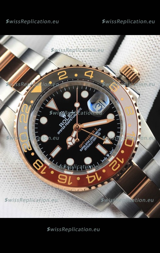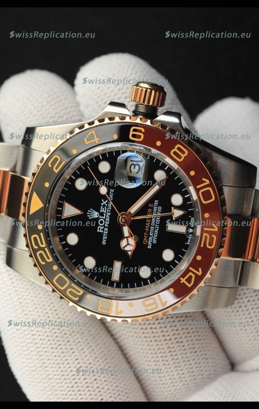 | Description | Rolex GMT Masters II 2 Tone Rose Gold Plating Japanese Replica Watch Black Dial |