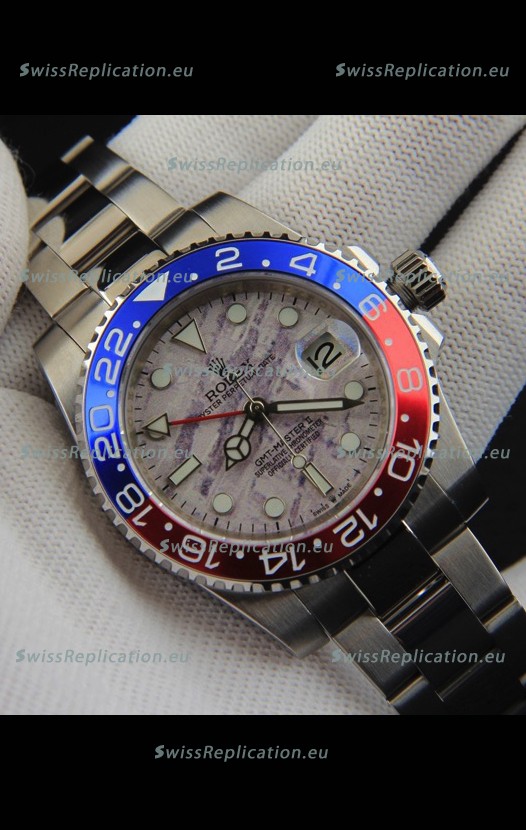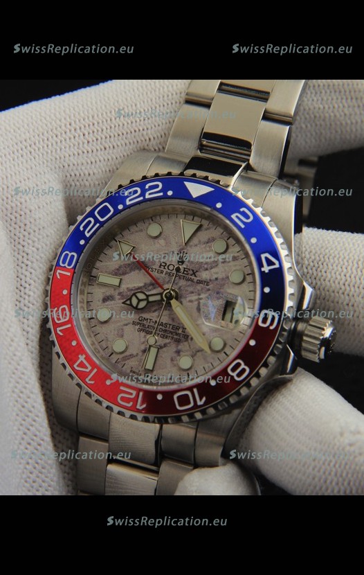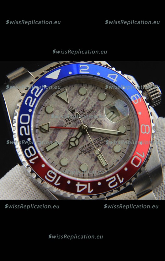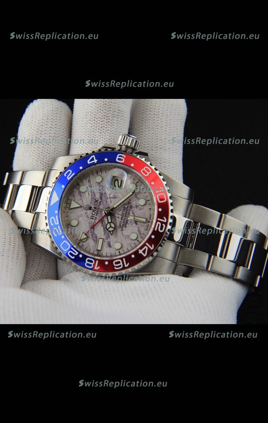 | Description | Rolex GMT Masters II Japanese Movement Replica Watch Steel Case Meteorite Pattern Dial |