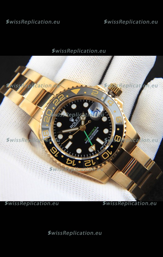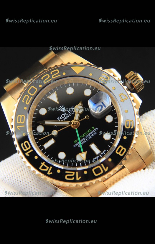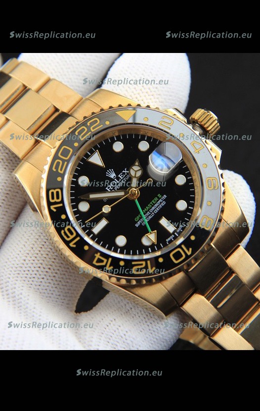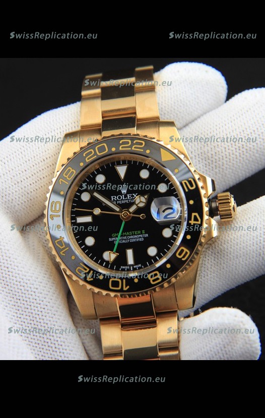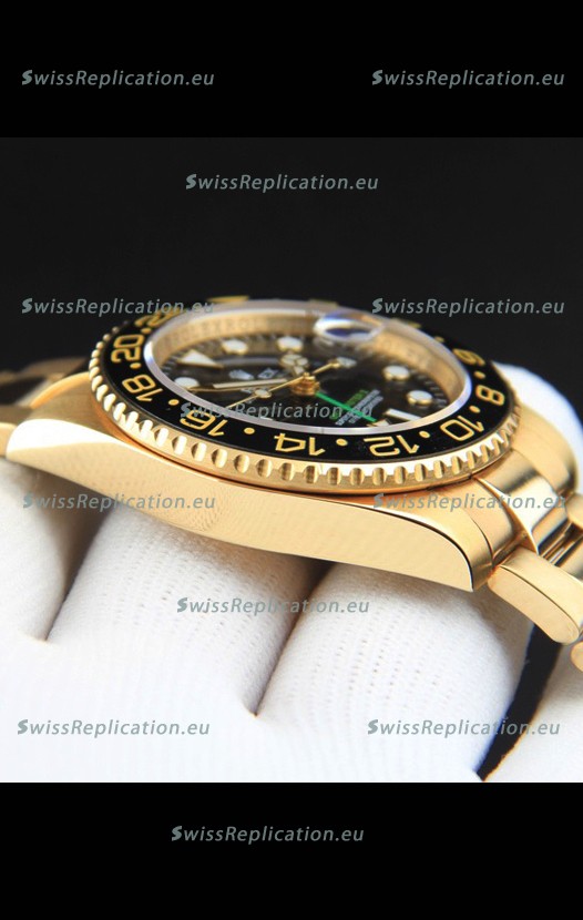 | Description | Rolex GMT Masters II Rose Gold Plating Japanese Replica Watch Black Dial |