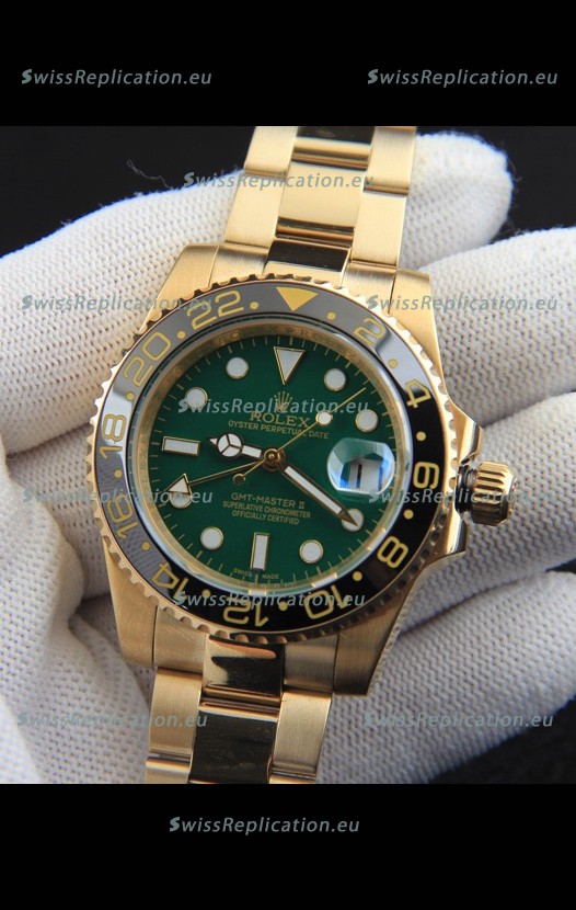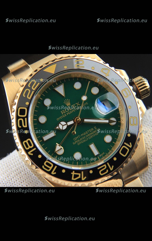 | Description | Rolex GMT Masters II Rose Gold Plating Japanese Replica Watch Green Dial |