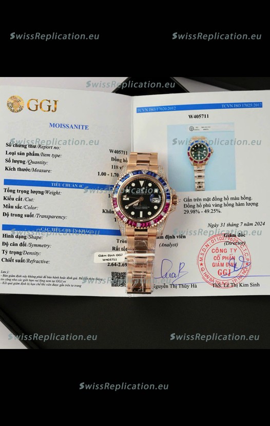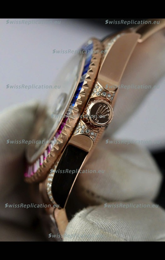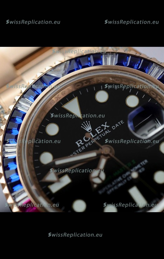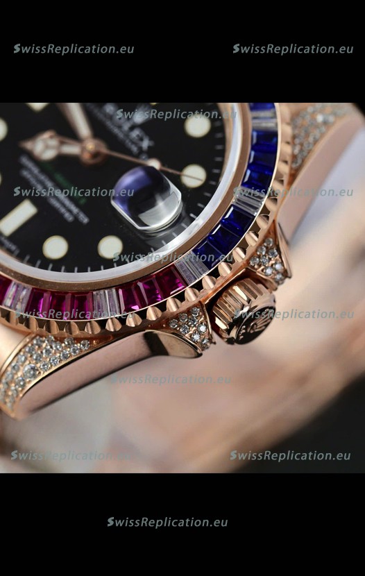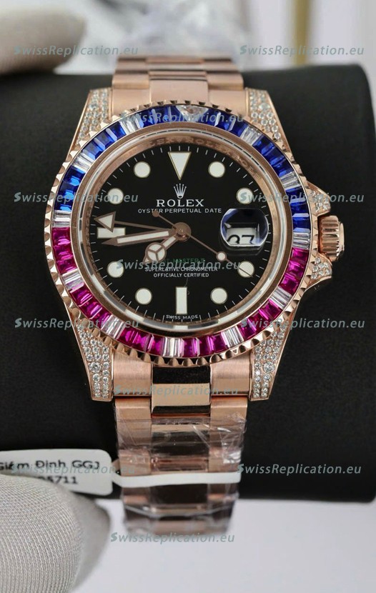 | Description | Rolex GMT Masters Super Clone Diamonds Swiss watch with Rose Gold 904L Case - 1:1 Mirror Quality |