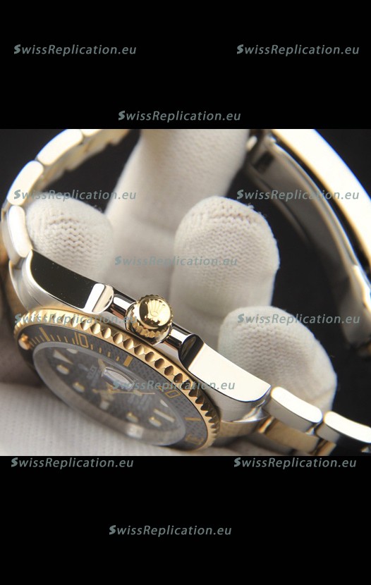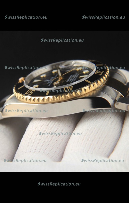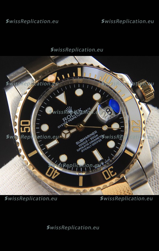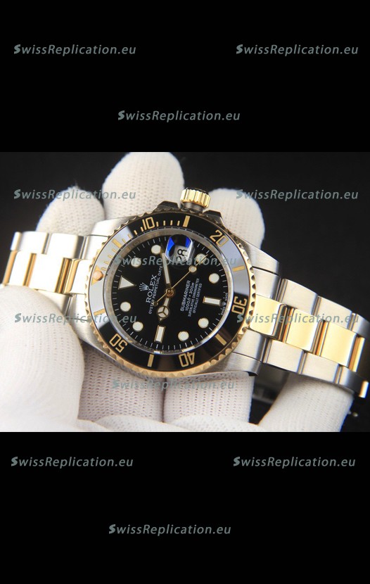 | Description | Rolex Submariner Japanese Replica Watch 904L 2 Tone Yellow Gold - Ceramic Bezel in Black |