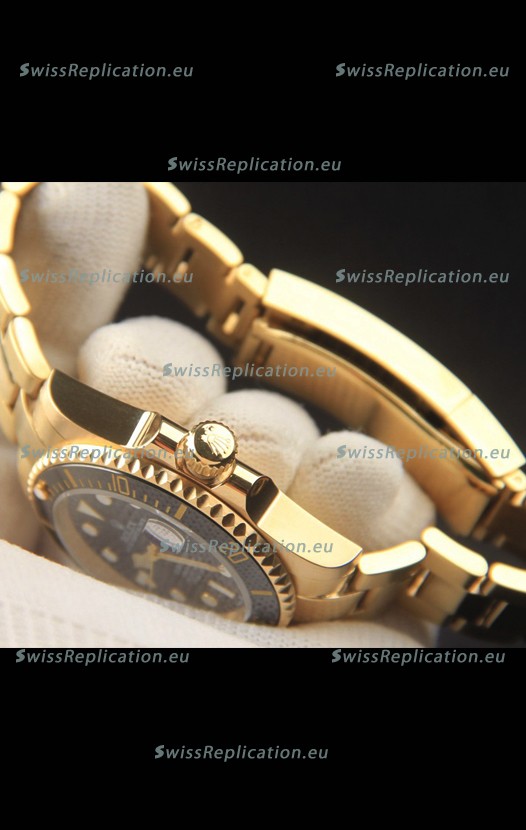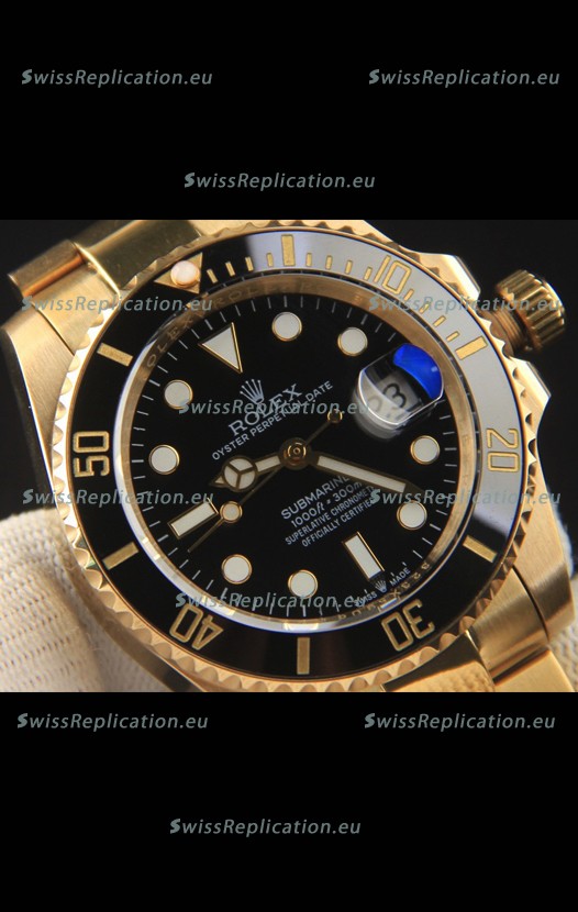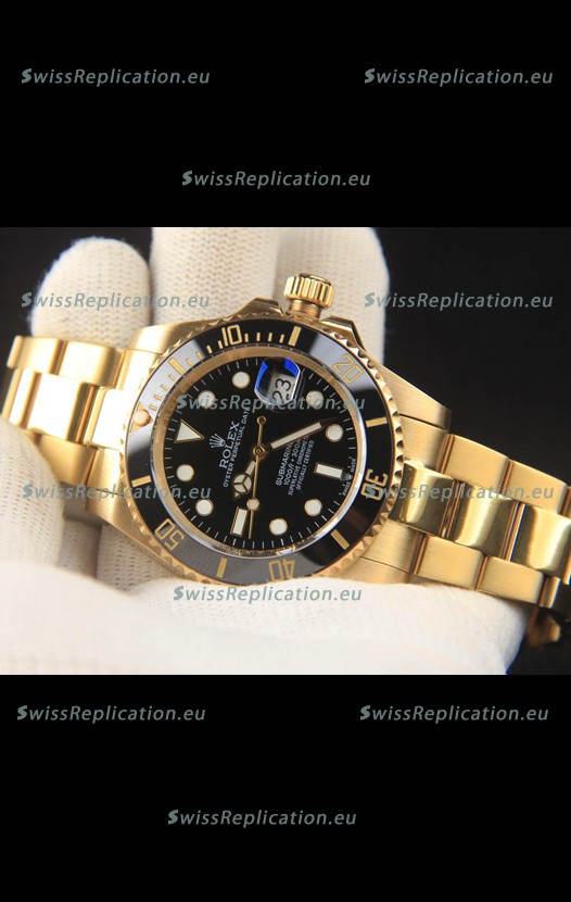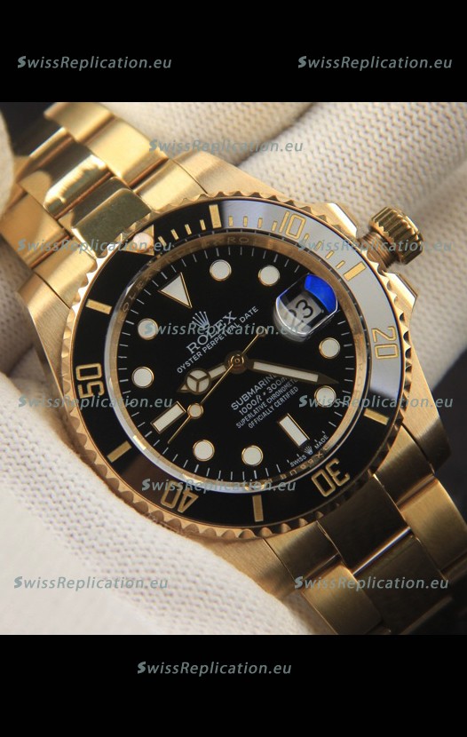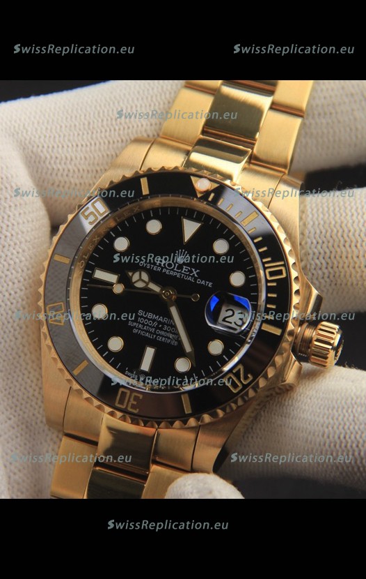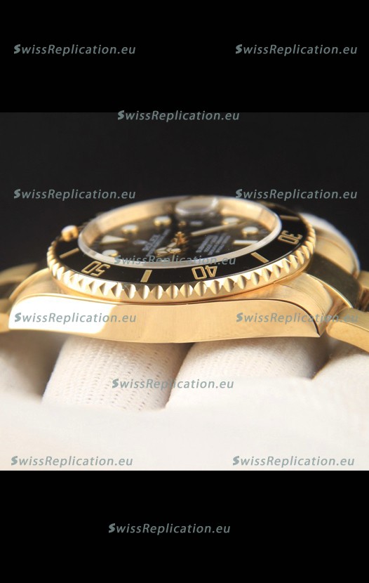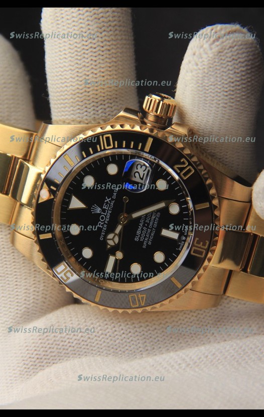 Description Rolex Submariner Japanese Replica Watch 904L Steel Yellow Gold - Ceramic Bezel in Black