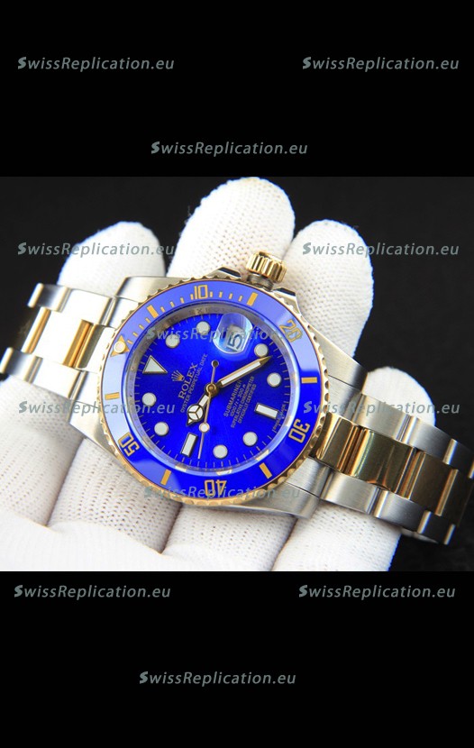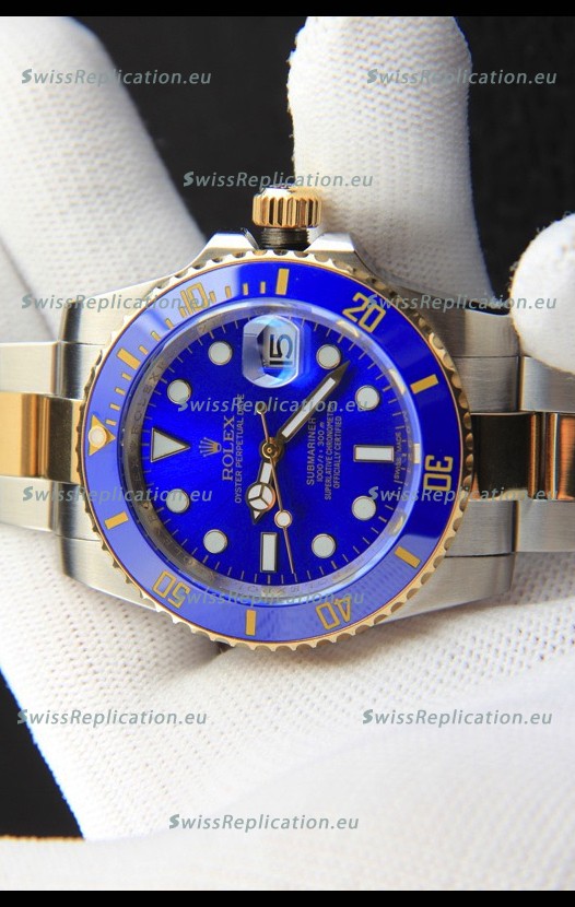 | Description | Rolex Submariner Japanese Replica Watch in 2 Tone Yellow Gold Casing Blue Dial |
