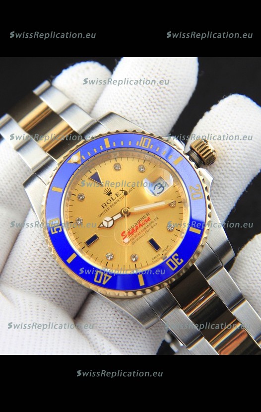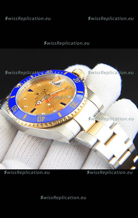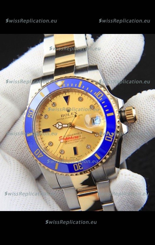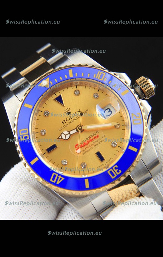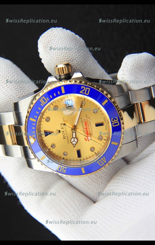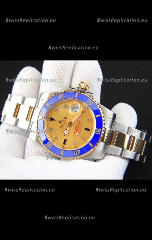 | Description | Rolex Submariner Japanese Replica Watch in 2 Tone Yellow Gold Casing Gold Dial |