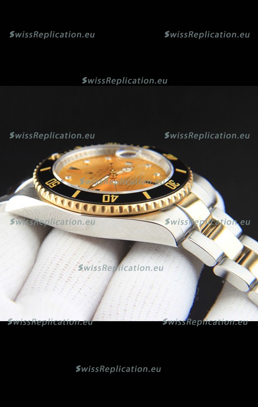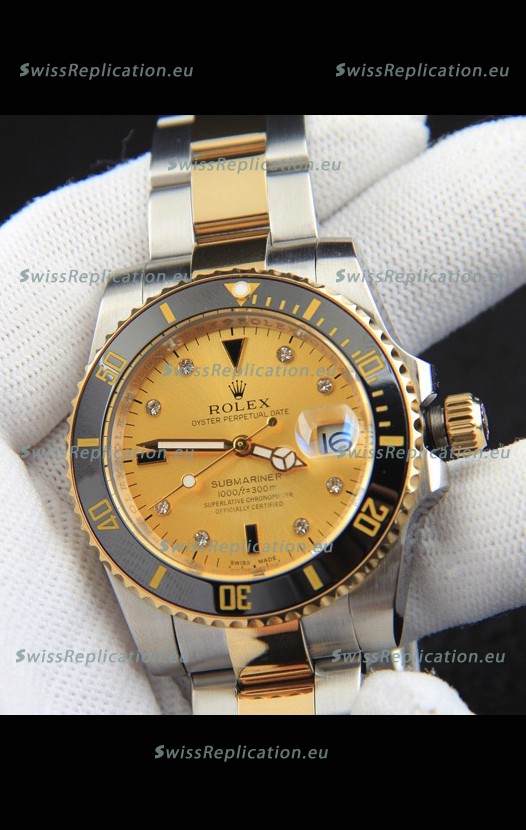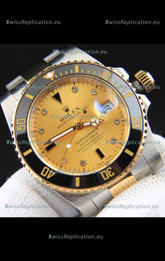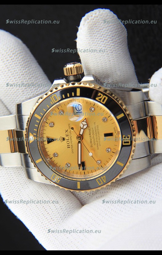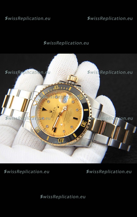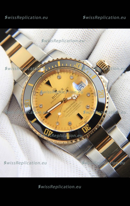 | Description | Rolex Submariner Japanese Replica Watch in 2 Tone Yellow Gold Casing Gold Dial |