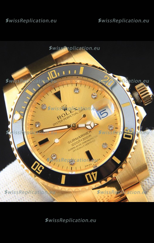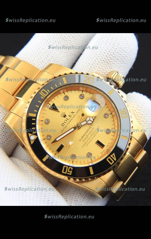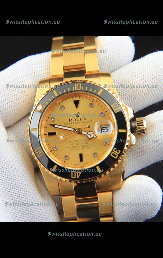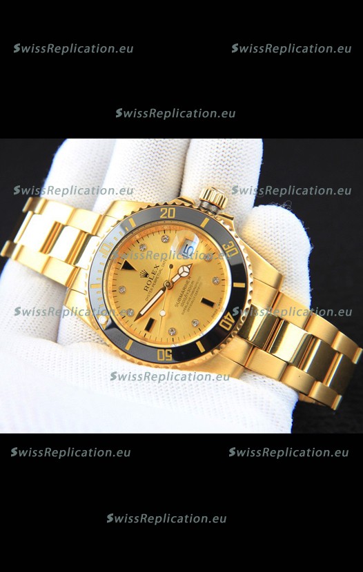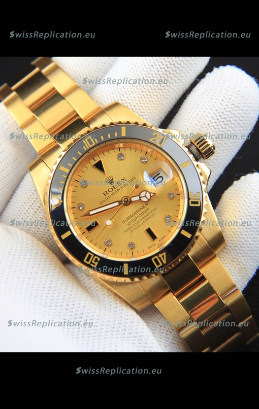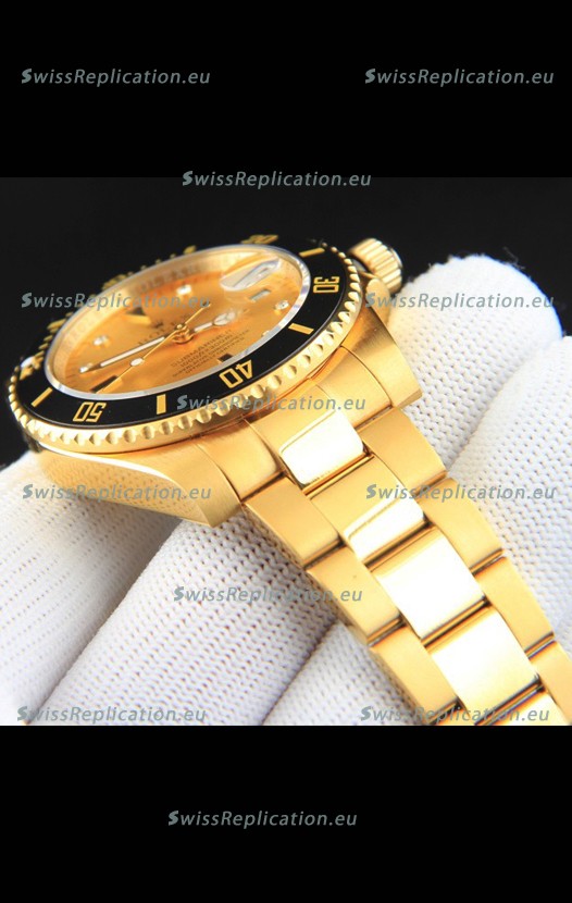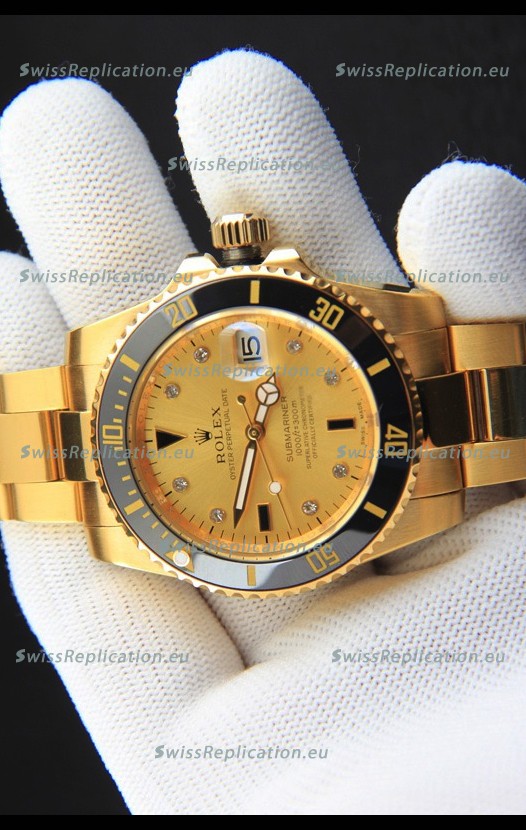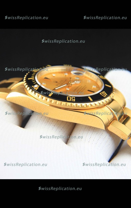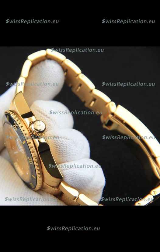 | Description | Rolex Submariner Japanese Replica Watch in Yellow Gold Casing Black Bezel |