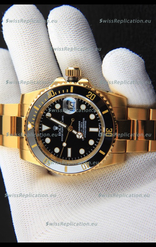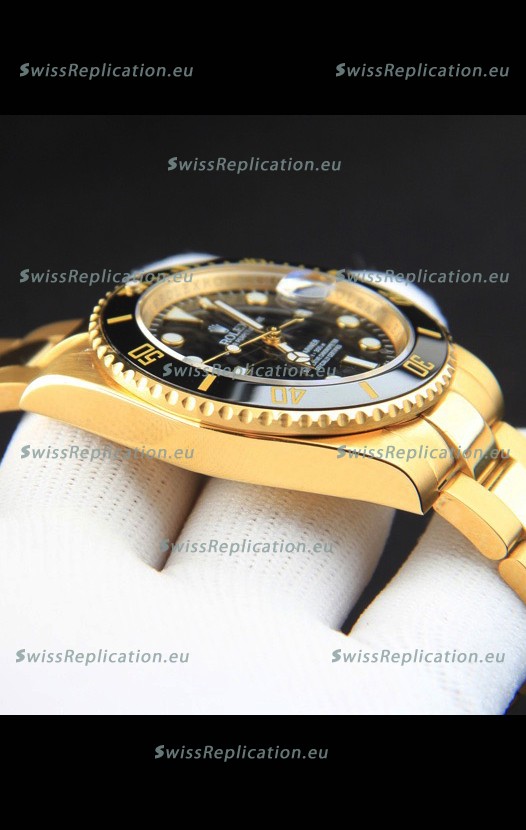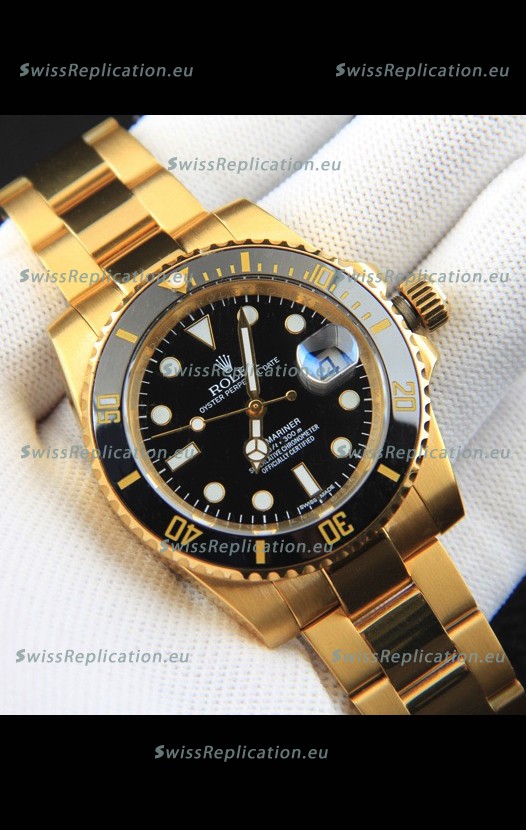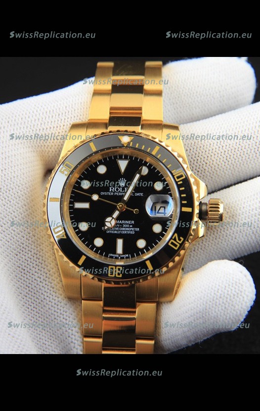 | Description | Rolex Submariner Japanese Replica Watch in Yellow Gold Casing Black Dial |