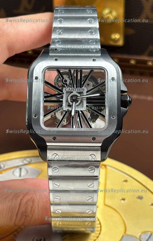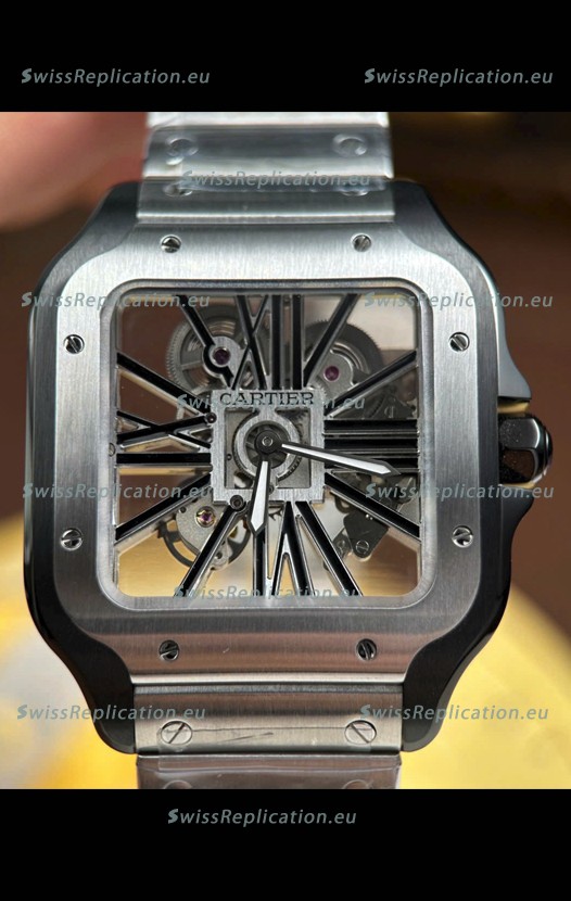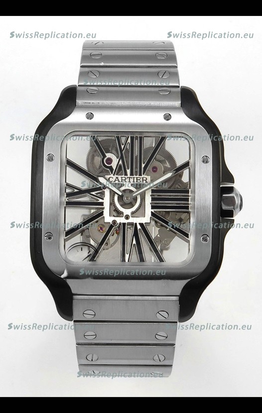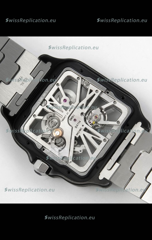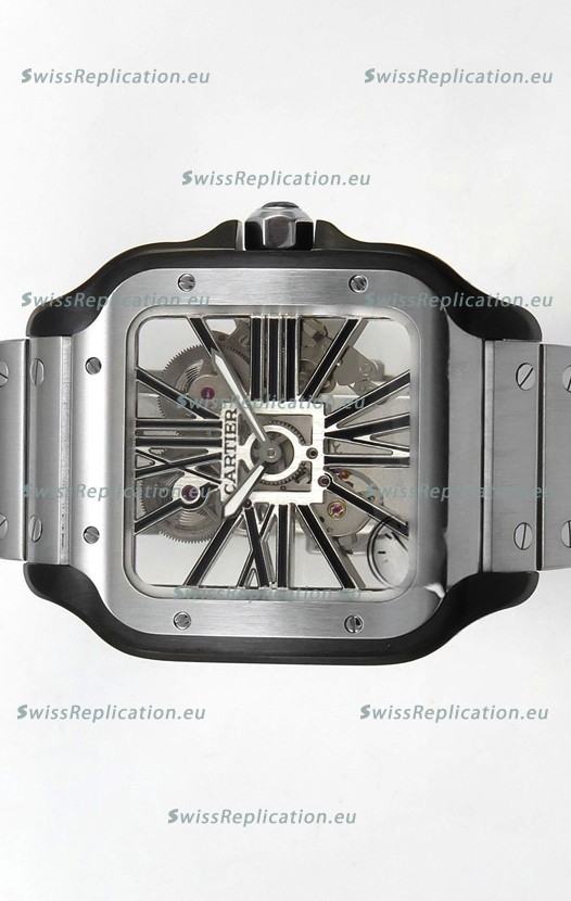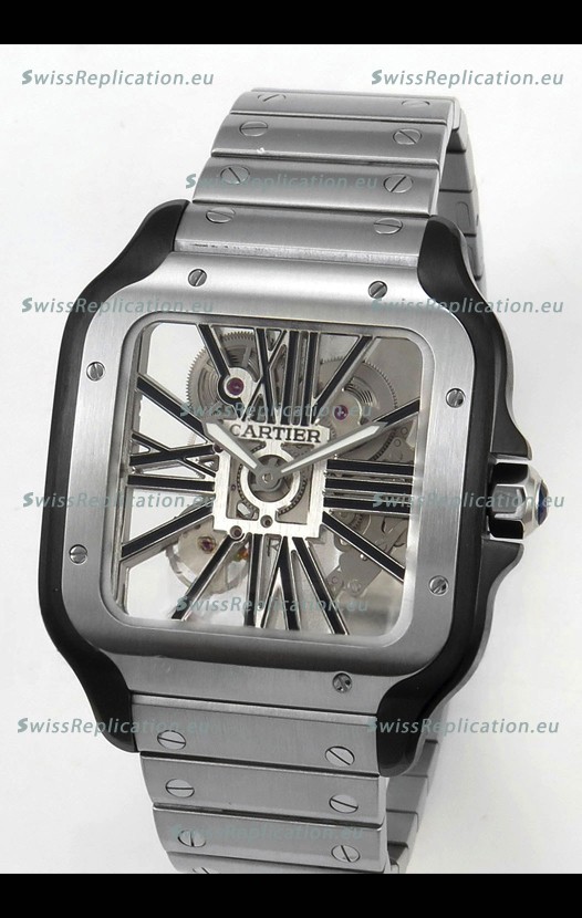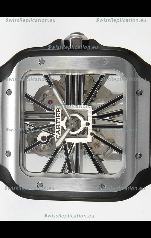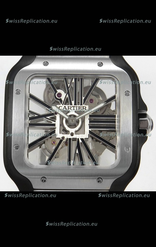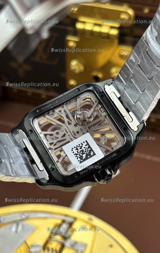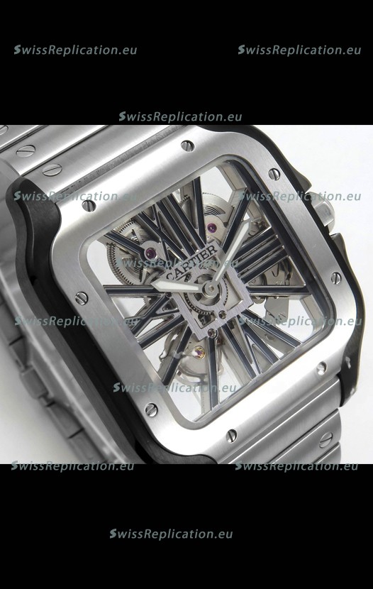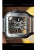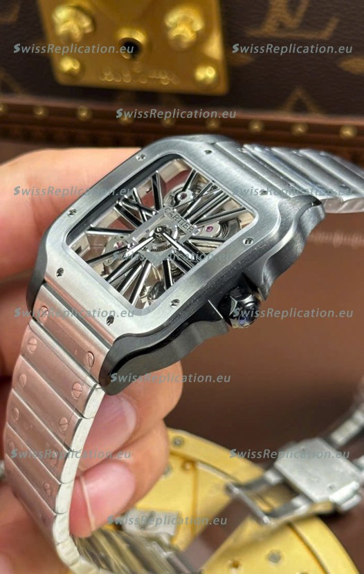 | Description | Santos De Cartier Super Clone Watch in Skeleton Dial Brushed DLC Coated Steel Casing Watch |