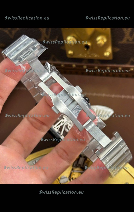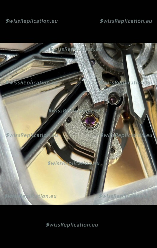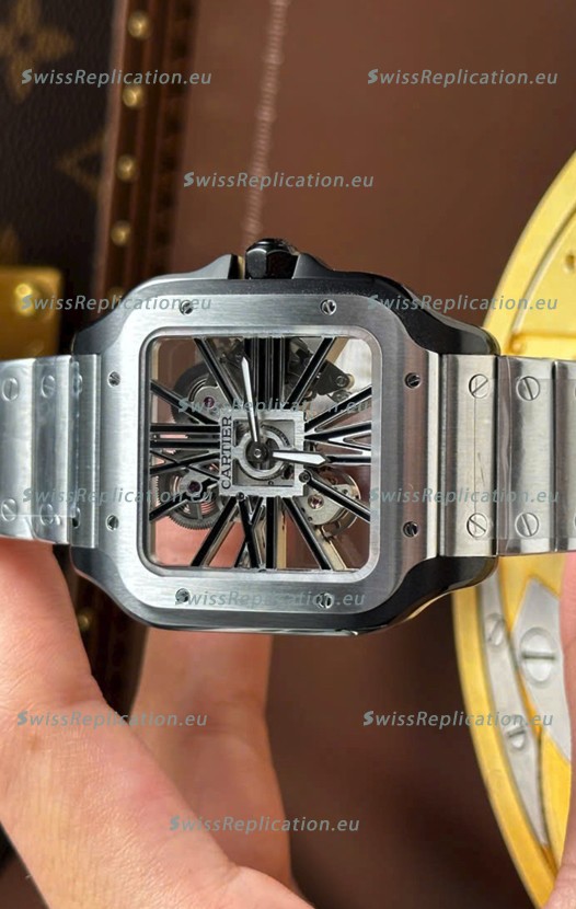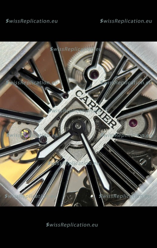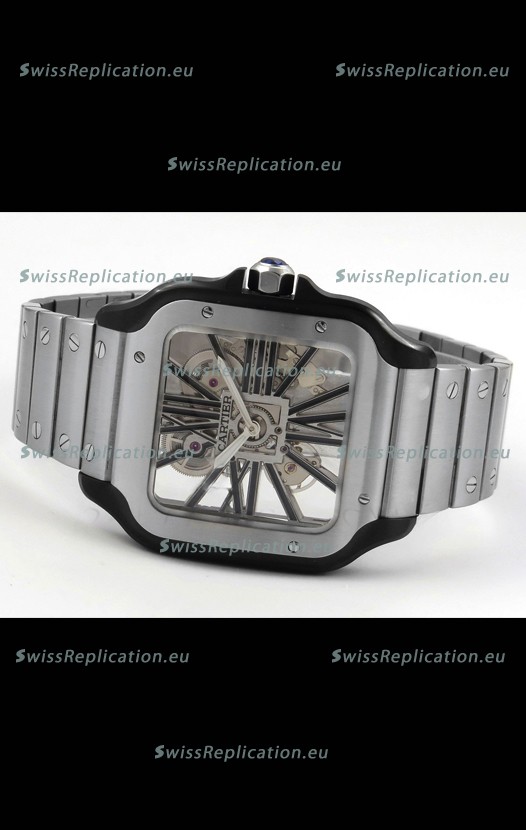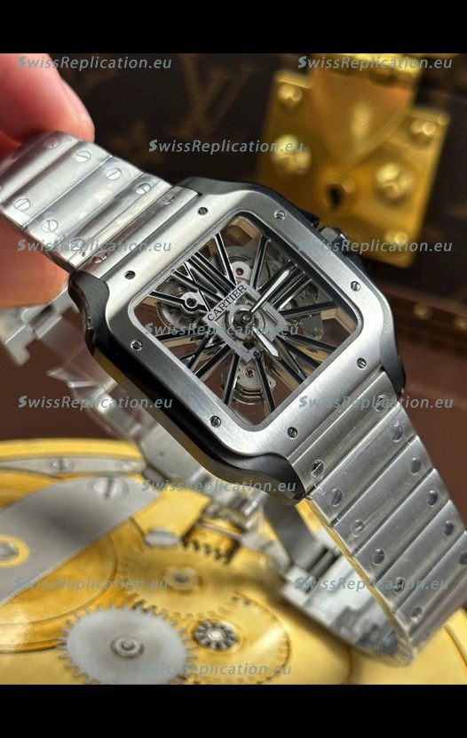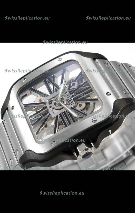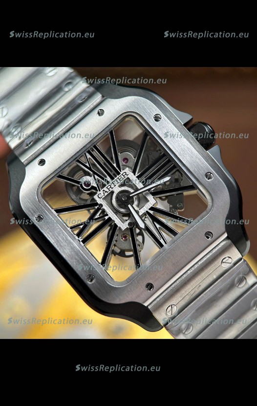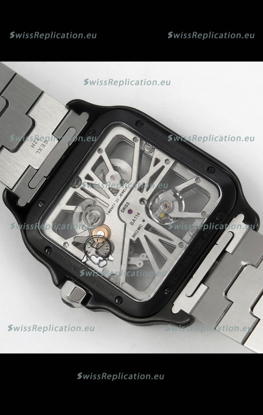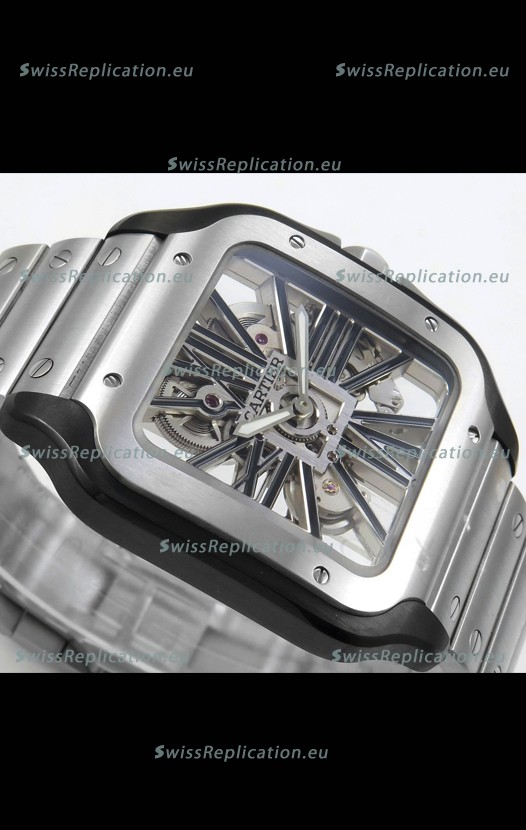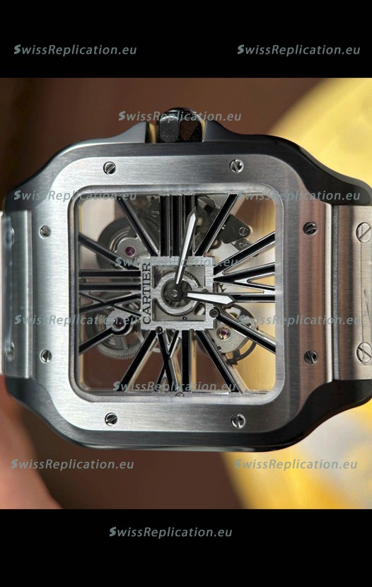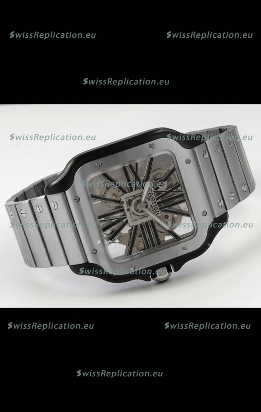 | Description | Santos De Cartier Super Clone Watch in Skeleton Dial Brushed DLC Coated Steel Casing Watch |