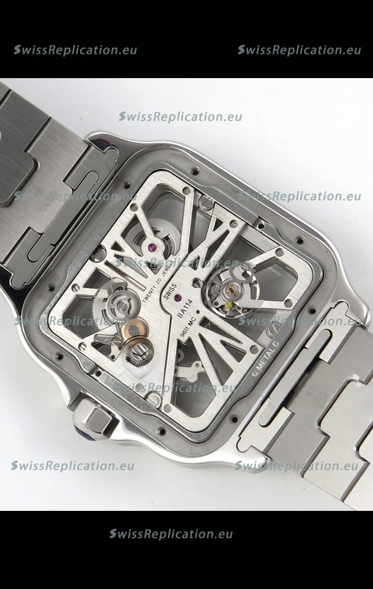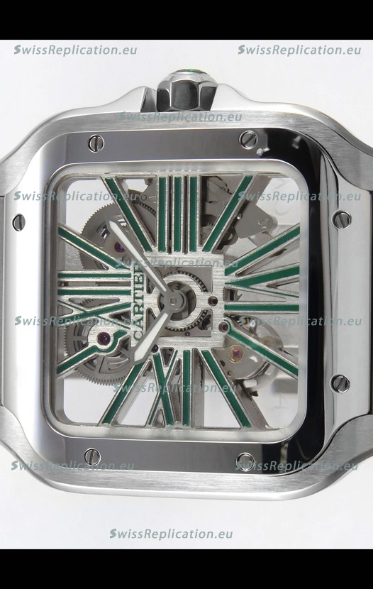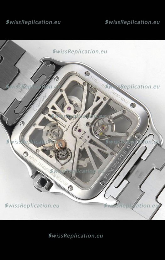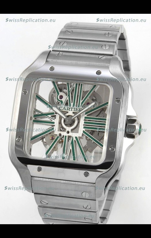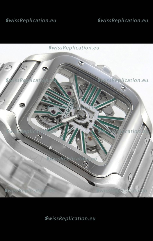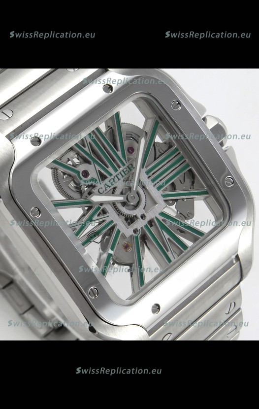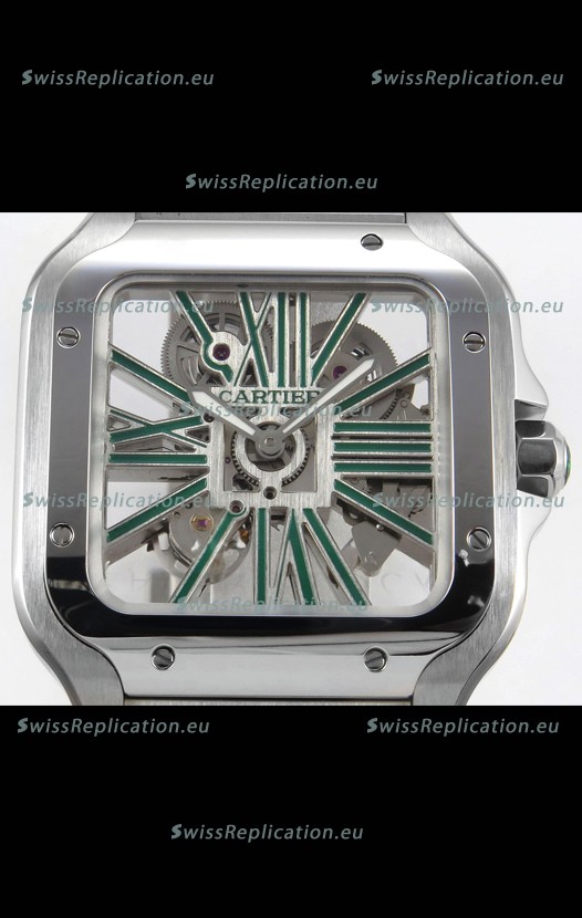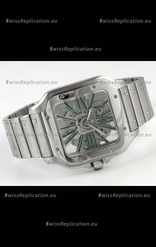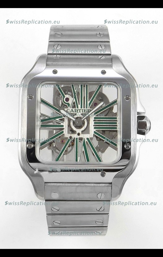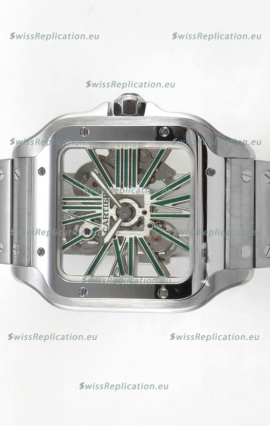 | Description | Santos De Cartier Super Clone Watch in Skeleton Dial Stainless Steel Case |