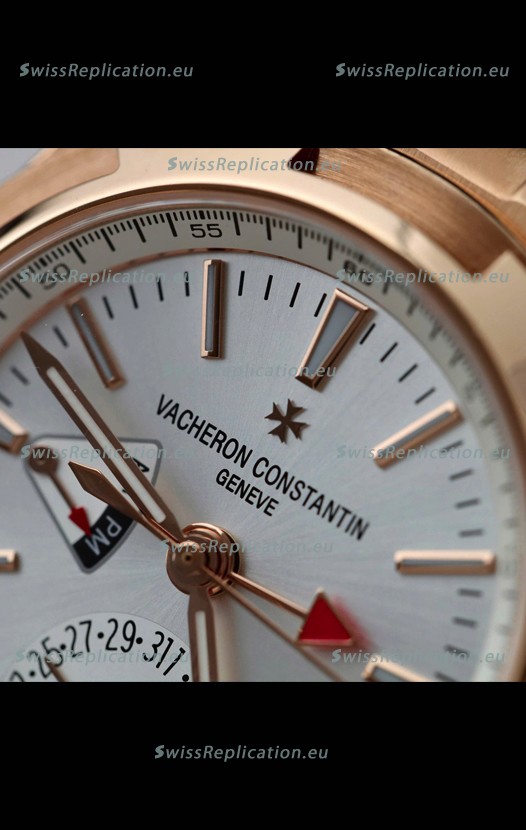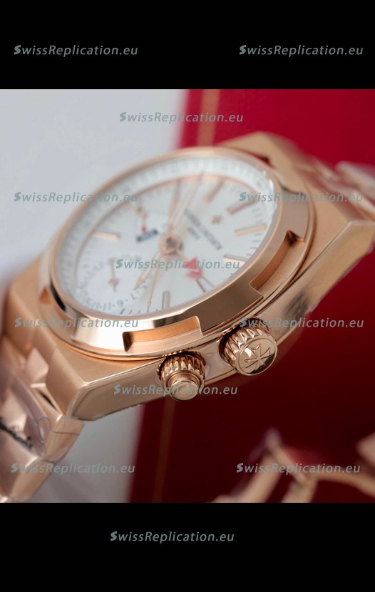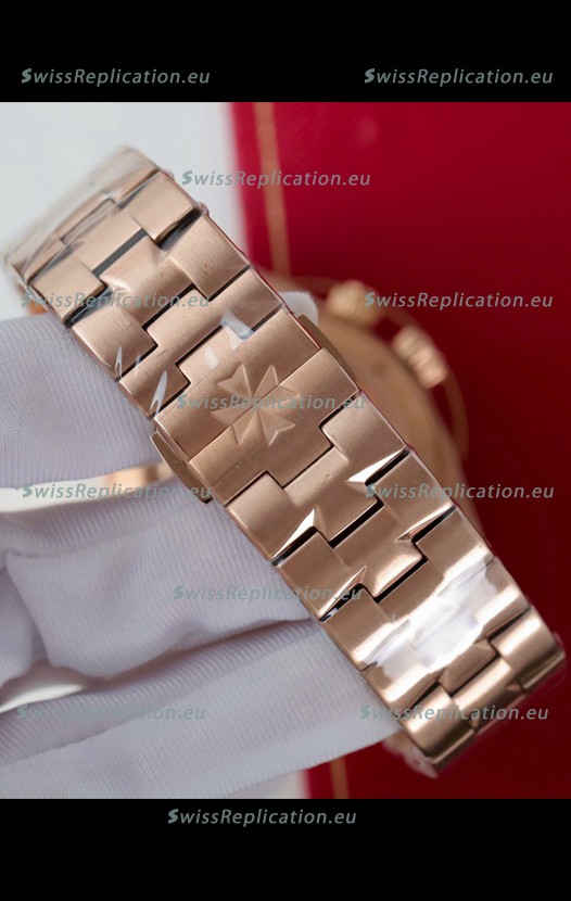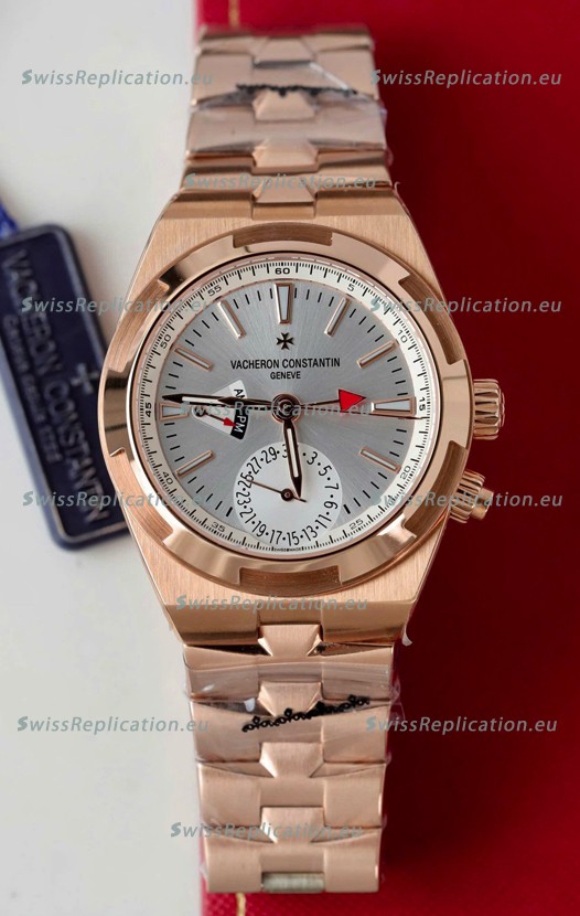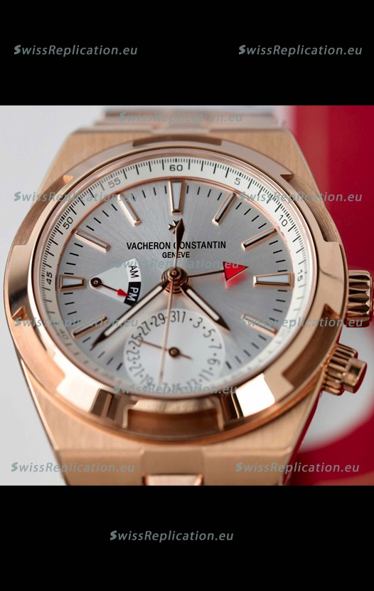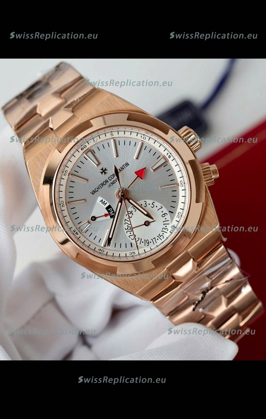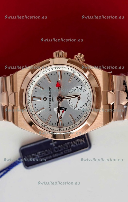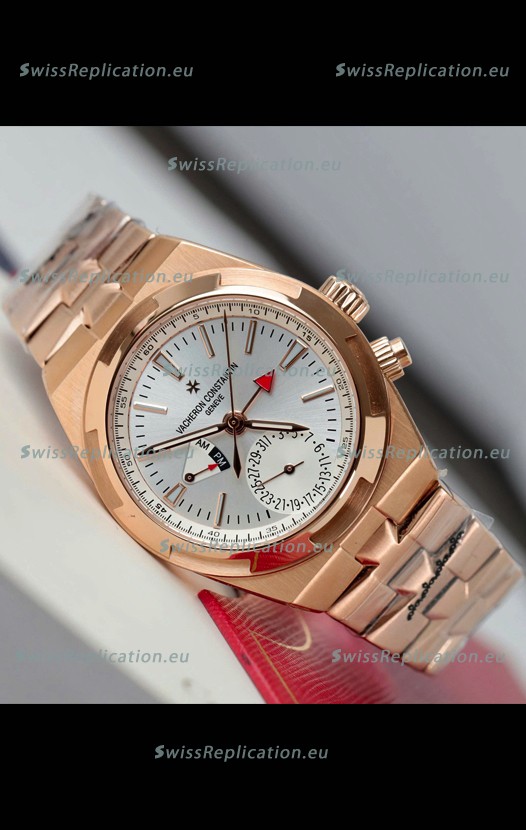 | Description | Vacheron Constantin Overseas Dual Time Rose Gold 1:1 Mirror Swiss Replica Watch in Steel Dial |